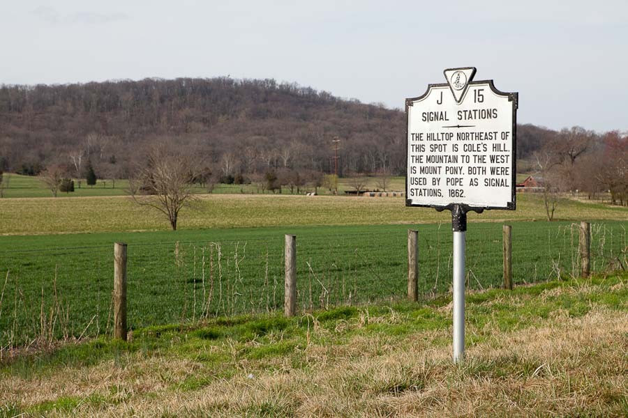 The Culpeper Media Archive Bunker Civil war historical markers along the highway to the archive (embedded in the hill pictured) describe the uses of these hilltops by the confederate army signal corps.