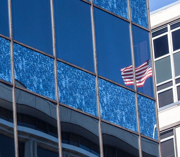 Visually, the film is composed of telescopic, oblique views of windows. Reflections in these widows, often mirrored, reveal an inverse “known world,” underscoring complications of what is perceived and what is real. In this sense, material elements of architecture frame as well as distort the landscape. Sonically, the film uses a unique device to represent locations pictured: each site is presented to the viewer by way of an outgoing phone message, recorded via telephone, after business hours, from the represented institution. These disembodied monologues, uncannily recontextualized, become dialogues between architecture and viewer, implying layers of perceived meaning open to speculation.